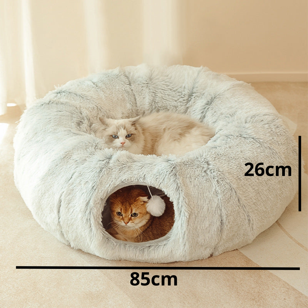 Of je kat nu een echte avonturier is, graag slaapt, of zich graag verstopt – dit speelbed biedt het allemaal. Het pluche materiaal voelt warm en behaaglijk aan, en de tunnel biedt precies de verstopplek die ze zoekt. Een heerlijke plek waar je kat zich kan uitleven en ontspannen, wat bijdraagt aan haar welzijn en geluk!