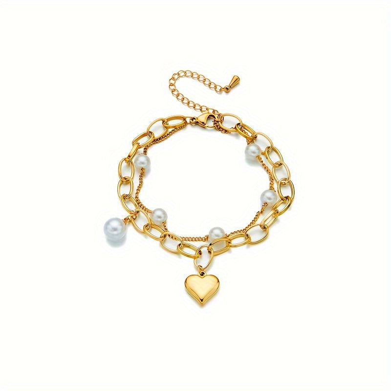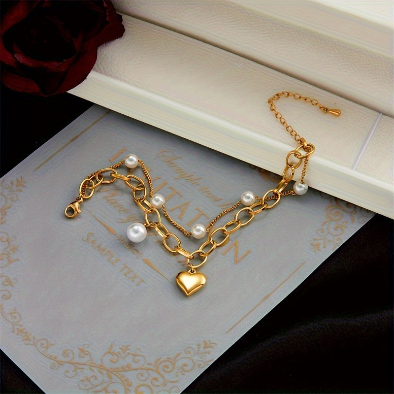 Voeg een vleugje verfijning toe aan je look met de Luxe Dubbellaagse Armband 'Lola'. Deze armband combineert twee lagen in een prachtig ontwerp, met een hart hanger en een imitatie parel die de armband een chique uitstraling geven. De roestvrijstalen afwerking zorgt voor duurzaamheid, waardoor deze armband jarenlang meegaat. Het slanke en delicate ontwerp maakt het de ideale keuze voor zowel casual als feestelijke gelegenheden.